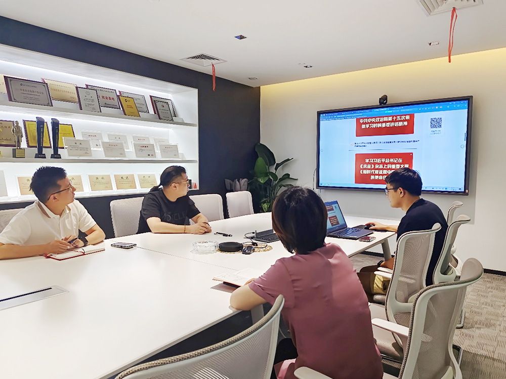 2024年7月下旬,公司组织全体党员干部以支部为单位进行以“深学细悟新思想,笃行奋进新征程”为主题的党日学习活动。本次学习内容为学习习近平总书记在二十届中共中央政治局第十五次集体学习时的重要讲话精神;学习习近平总书记在《求是》杂志上的重要文章《新时代新征程中国共产党的使命任务》;学习省委理论学习中心组习近平新时代中国特色社会主义思想专题学习会精神;学习全省、全市、全区警示教育会精神;学习全省、全市、全区基层党建工作会议精神。