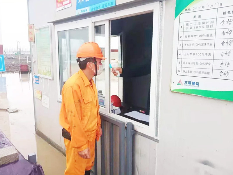 目前飞龙山庄进入打桩阶段,项目工地实行封闭化管理,同时建立每日员工体温检测、人员集中区域消毒,保证工作环境和员工安全。