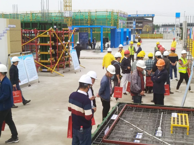 省级质量观摩会与会人员参观义蓬(二期)北地块项目工艺展示区