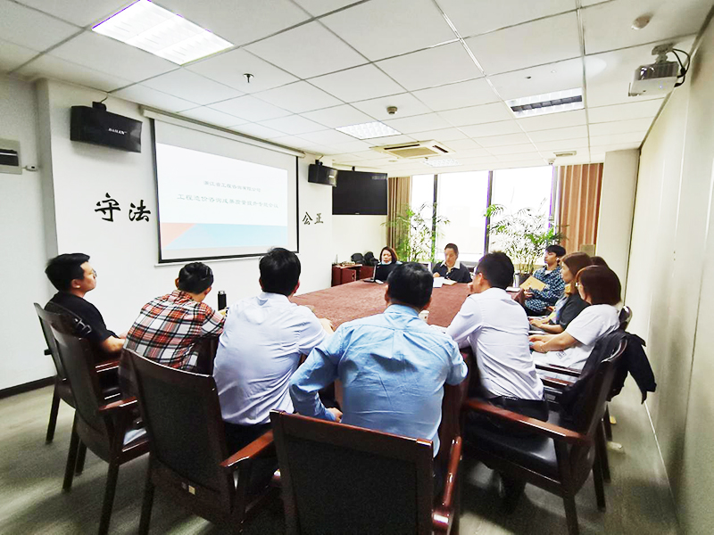 2022年3月16日下午,为推进公司工程造价咨询管理工作,提升工程造价咨询成果质量,公司组织召开工程造价咨询成果质量提升工作专题会议。会议由办公室主任金美青主持,执行总经理陆文俊、杨哲野、黎毅出席会议,承担造价类业务的部分事业部总经理和工程造价咨询专业技术人员等参加了本次会议。