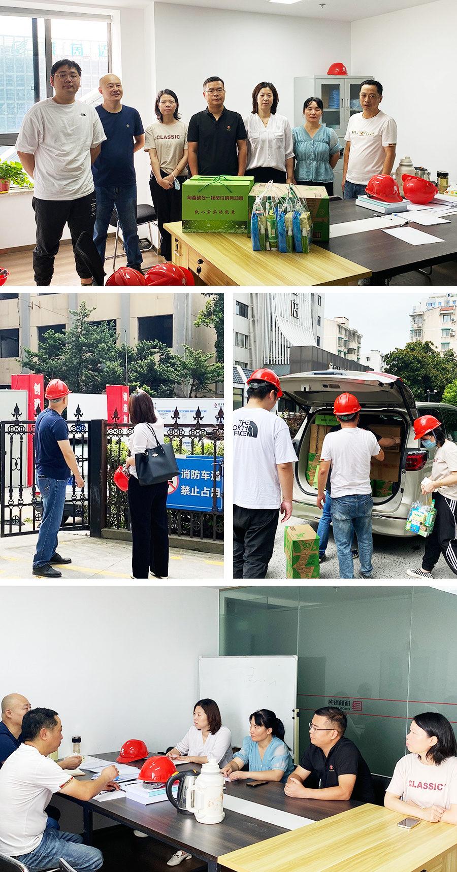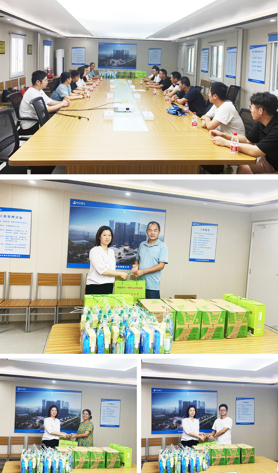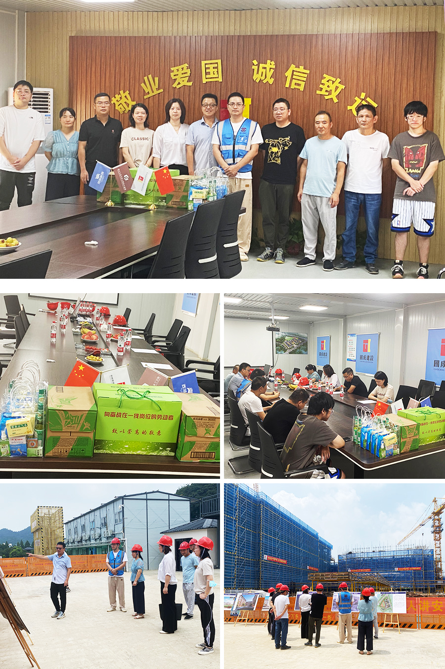为进一步做好夏季一线职工防暑降温工作,切实维护员工的健康和安全,2023年8月9日,公司执行总经理杨哲野、办公室主任金美青和副总工蒋挺、总师办王艳荣、应淙涵、陈林爱等一行,代表公司党总支、公司工会和公司领导以及各职能部门到公司直管项目现场开展夏季高温慰问活动,看望并慰问坚守在工作一线的项目部同事们,给大家送去了防暑降温用品。