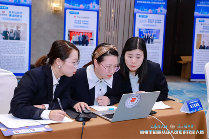 2023年11月28日下午,杭州市招标从业人员“公廉耀天秤 匠心谱华章”知识技能大赛团队决赛圆满落下帷幕。本次大赛由杭州市城乡建设委员会、杭州市总工会主办,杭州市建设工程招标造价服务中心、杭州市建设工会承办,杭州市建设工程造价管理协会等单位协办。本届招标从业人员知识技能大赛是首次针对全市招标从业人员举办的知识技能大赛,分为个人赛和团体赛两个阶段。杭州市共有131家企业1433名造价从业人员报名参赛。在11月14日举办的个人决赛中,200名选手为个人而战、为团体而战,经过激烈角逐,我公司从众多参赛企业中脱颖而出,成为参加团体决赛的十家企业之一。