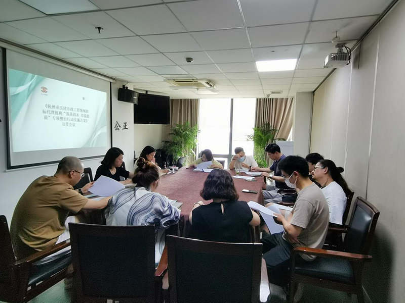 本次会议重点宣贯了杭州市城乡建设委员会下发的《杭州市房建市政工程领域招标代理机构“强基固本 培能提质”专项整治行动实施方案》。会上向各部门招标代理人员明确了本次专项整治行动的整治目标、整治范围、整治内容、工作步骤、检查组织工作和工作要求,办公室主任金美青对各部门招标代理项目信息的上报、核实工作提出了明确的要求。