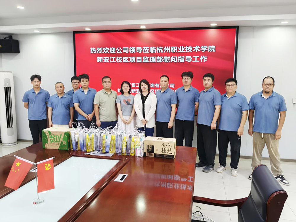 慰问团一行先后前往杭州职业技术学院新安江校区建设工程(一期)、之江度假区XH1705-05地块保障性住房项目、海康机器人产品产业化基地建设项目监理、浙江特殊教育职业学院天城路校区实训基地提升改造项目以及小和山单元XH1407-1(C)地块九年一贯制学校项目进行慰问。每到一处,慰问团都与一线员工细致交流,关切询问大家的工作进度与生活保障情况,将清凉物资一一送到员工手中,让坚守者感受到“高温下的清凉关怀”。