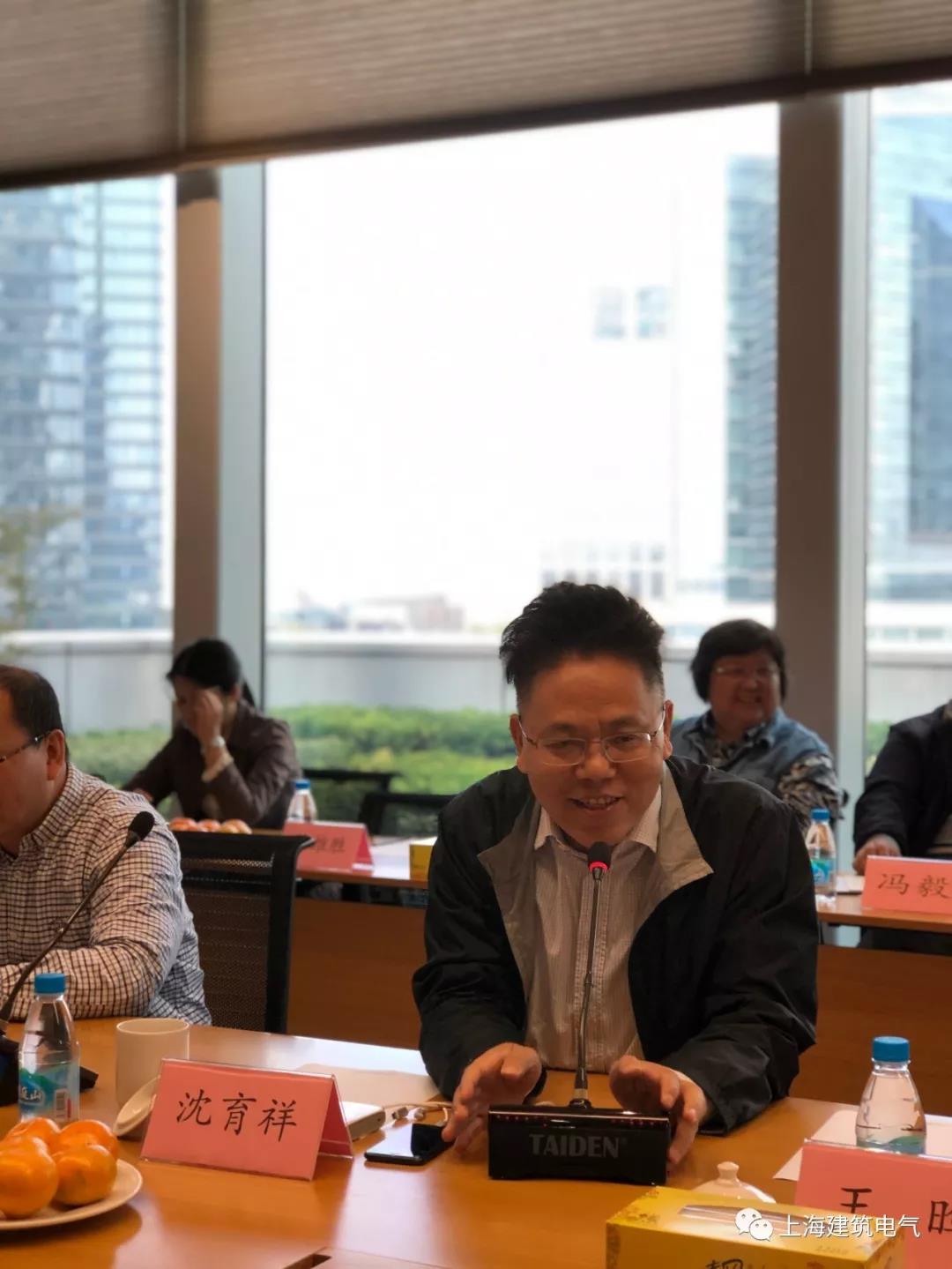 首先,中国建筑学会建筑电气分会理事长沈育祥致辞。 沈总对上海建筑电气的工作给予了充分肯定,并希望全体委员能够团结一致,再接再厉,创造出更好的成绩。