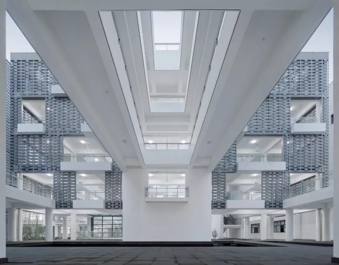 作为苏州高铁新城核心区的第一座九年一贯制的的校园综合体,在功能上,中小学既要做到分区明确,又要共享、共用。在形态上,展现了新城区的未来属性。高铁新城第一中小学的校园,巧妙的将“泛在学习”和景观之间彼此渗透,利用奇妙的空间关系,使环境在校园中流动,而“泛在学习”空间也突破了走廊的空间属性,通过多样性空间,将“使用即学习、学习即使用”的概念得以实现。