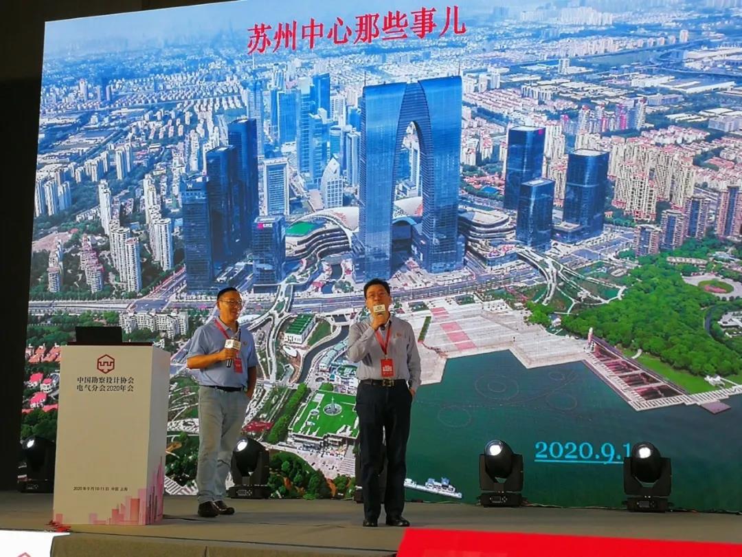 中衡设计集团股份有限公司电气总工程师、中国勘察设计协会电气分会监事会监事及常务理事傅卫东受邀参加此次会议,并与启迪设计集团股份有限公司电气总工程师颜宏勇共同作《苏州中心那些事儿》学术报告。在表彰大会上,中衡设计与启迪设计合作完成的苏州中心广场项目获一等奖,中衡设计中国农业银行苏州分行项目获二等奖。