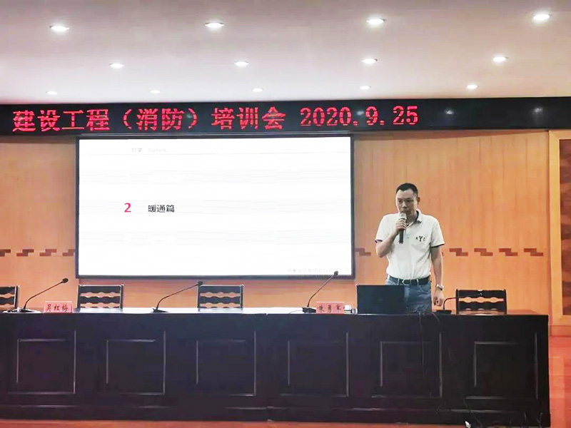 签约仪式前奏完毕后,吴江区住建局召开全区建设工程消防培训会。各镇区建管所、代建项目管理公司,全区建设、设计、施工企业等相关单位50余人参加培训会。来自中衡设计建筑、给排水、暖通、电气四个专业的专家顾志兴、程磊、朱勇军、杜广亮为参训人员授课。