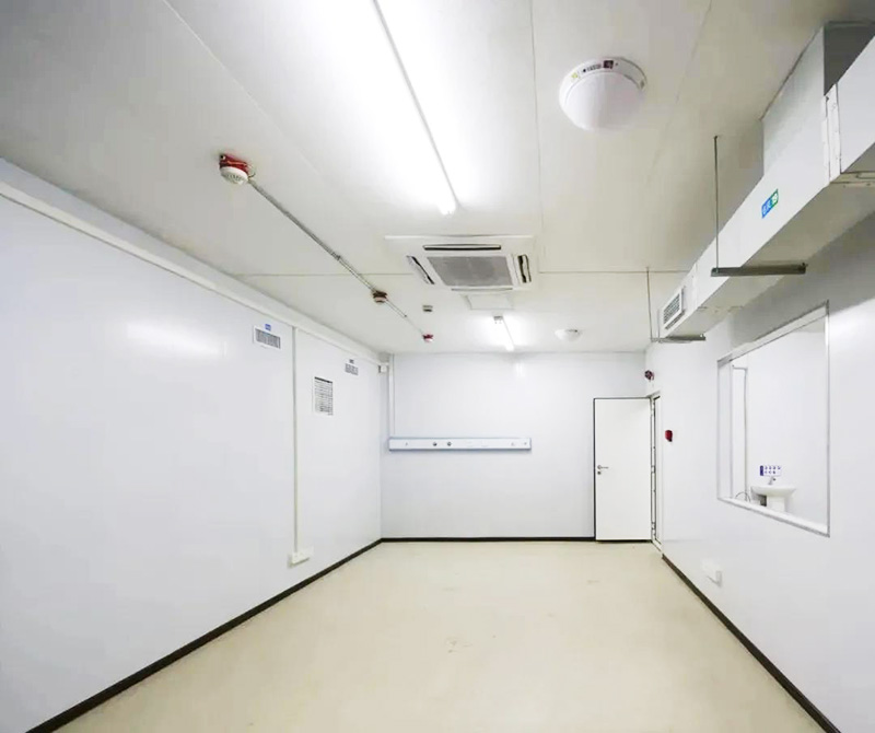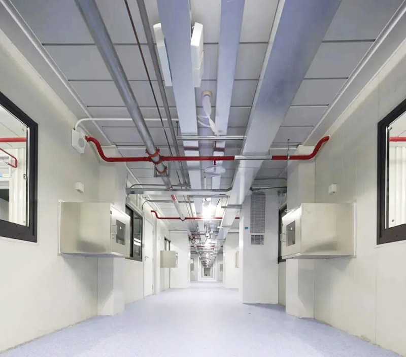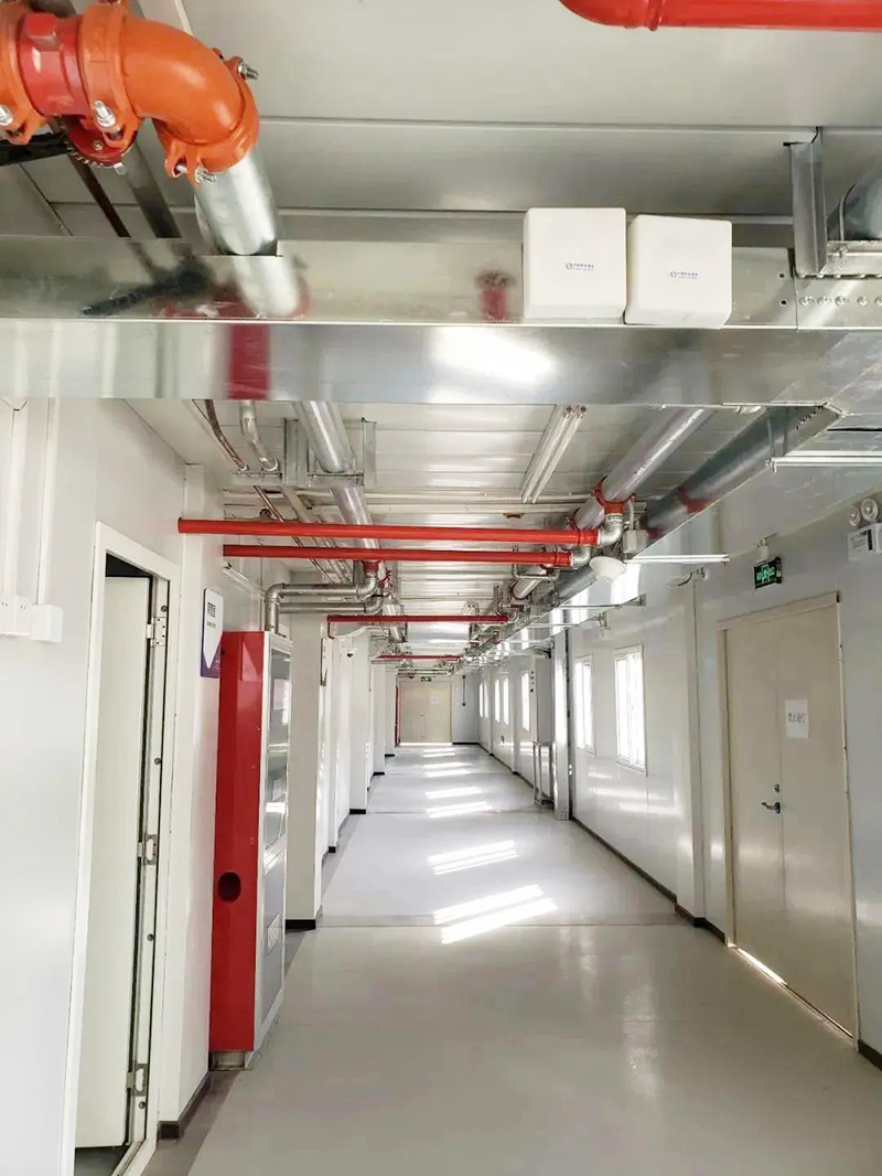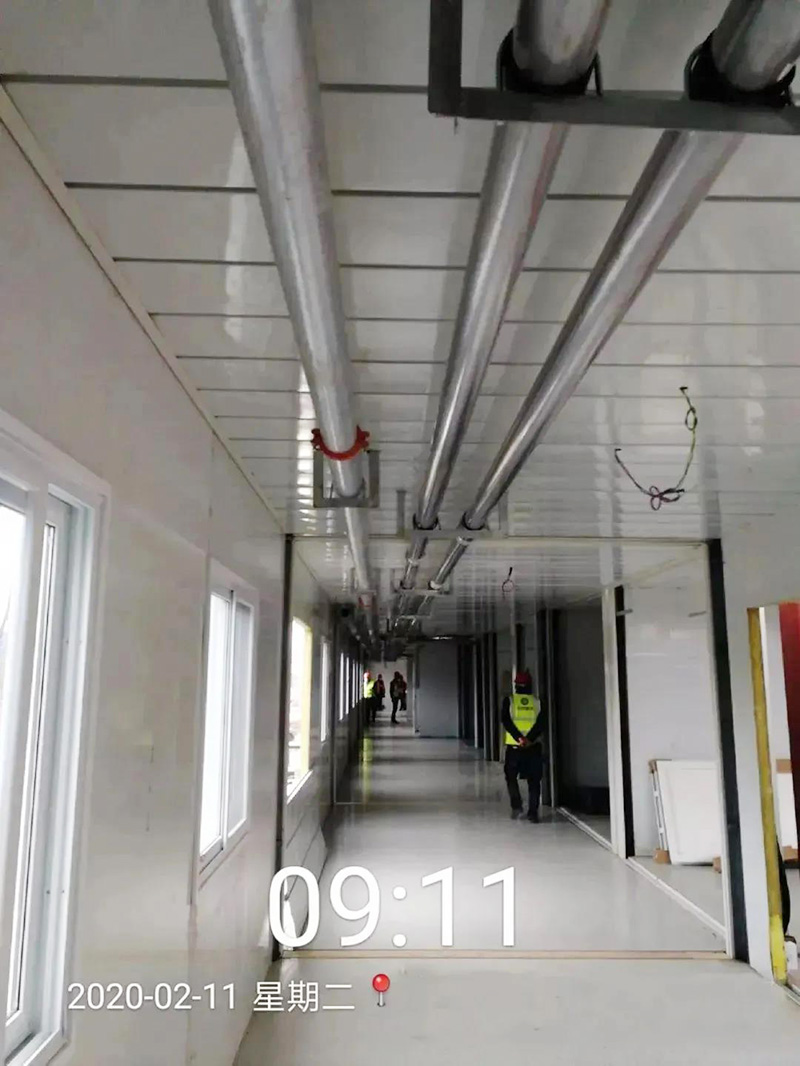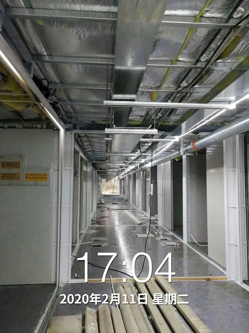 南通第六人民医院隔离病房扩建工程,与普通应急病房扩建不同,包含了负压病房、ICU、接诊区、影像科、检验科、预留手术区、医用垃圾、医用气体等功能。建筑面积约1.38万平方米,使用集装箱体869个,混凝土5600立方,建筑钢筋283吨,钢结构133吨,病房200床,ICU20床,是一间功能完整的传染病应急医院。