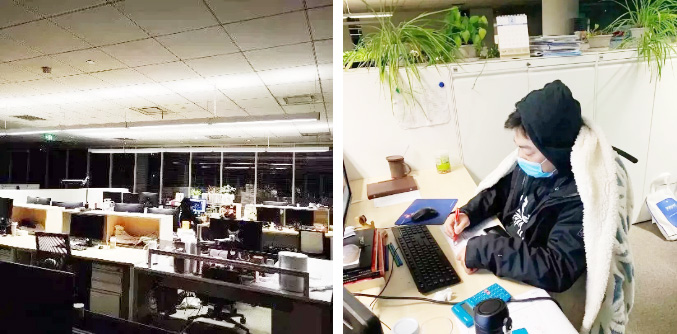 △ 苏州医疗设计团队也彻夜奋战(冷了披上“棉被”)
