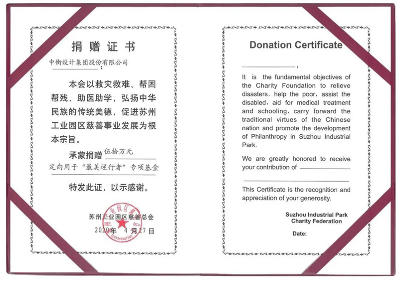 秉持“一方有难、八方支援”的精神,中衡设计集团总计捐赠100万元致敬最美逆行者,其中50万元定向用于慰问苏州医疗结构派往湖北奋战在防疫一线的医护人员,50万元向武汉定向捐赠,用于慰问奋战在防疫一线的医护人员。
