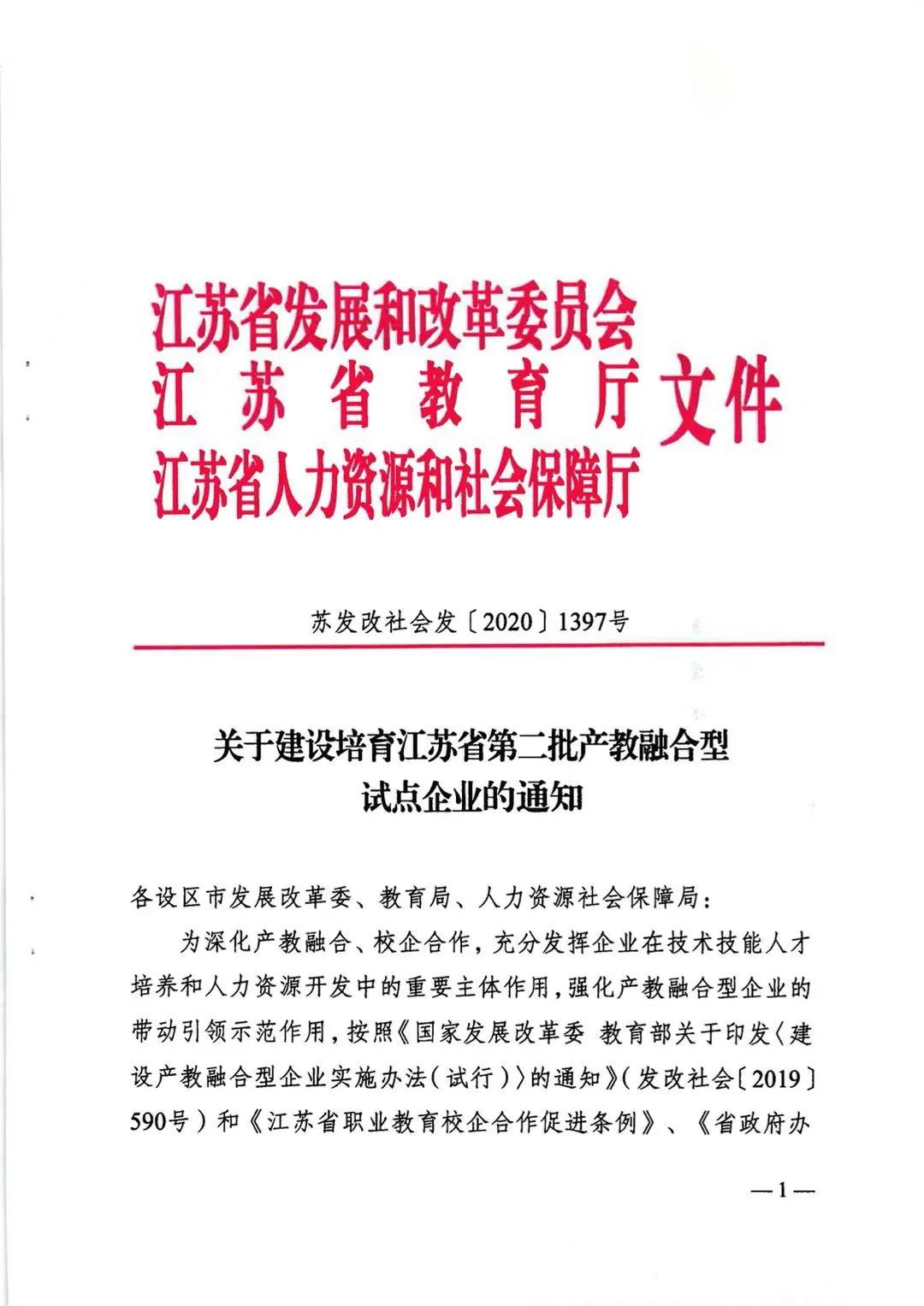 为深入贯彻党的十九大和全国教育大会精神,推进职业教育改革,完善职业教育和培训体系,深化产教融合、校企合作,充分发挥企业在技术技能人才培养和人力资源开发中的重要主体作用,强化产教融合型企业的带动引领示范作用,根据《国务院关于印发国家职业教育改革实施方案的通知》(国发〔2019〕4号)等要求,江苏省发展改革委、省教育厅、省人力资源社会保障厅面向全省开展产教融合型企业建设培育试点工作。