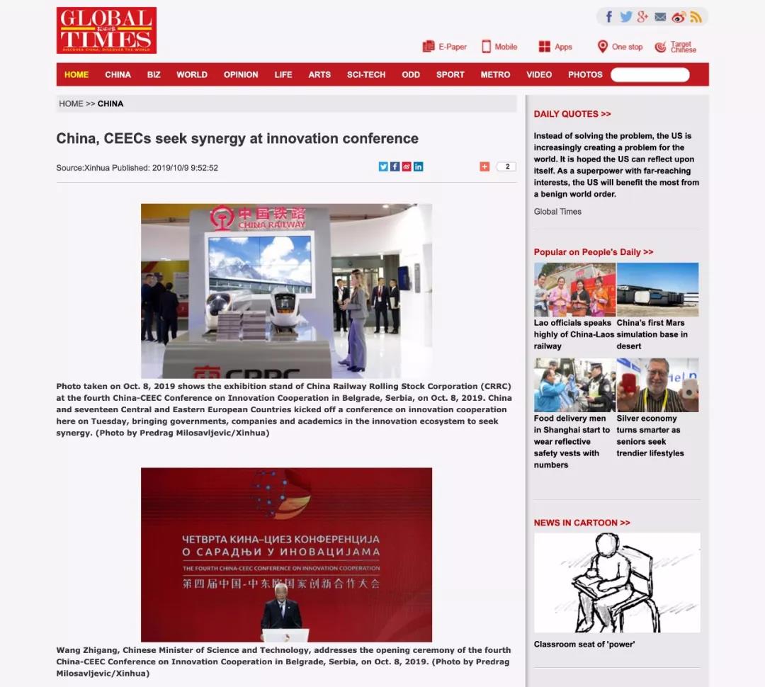 据新华社、央视网、人民网、光明网等报道,第四届中国-中东欧国家创新合作大会8日在贝尔格莱德开幕,中国科技部部长王志刚、塞尔维亚总理布尔纳比奇、塞尔维亚负责创新与技术发展的波波维奇部长以及来自匈牙利、捷克、斯洛文尼亚等中东欧国家的部长们共同出席了开幕式并参观了中国高铁、华为5G、中塞工业园等中国高科技展位。中衡设计集团总经理助理、精筑技术设计研究院院长路江龙应邀参加此次大会,就参与苏州工业园区建设经验,以及塞尔维亚政府和中国路桥共同投资建设的中国塞尔维亚工业园区的创新发展合作做大会交流发言。