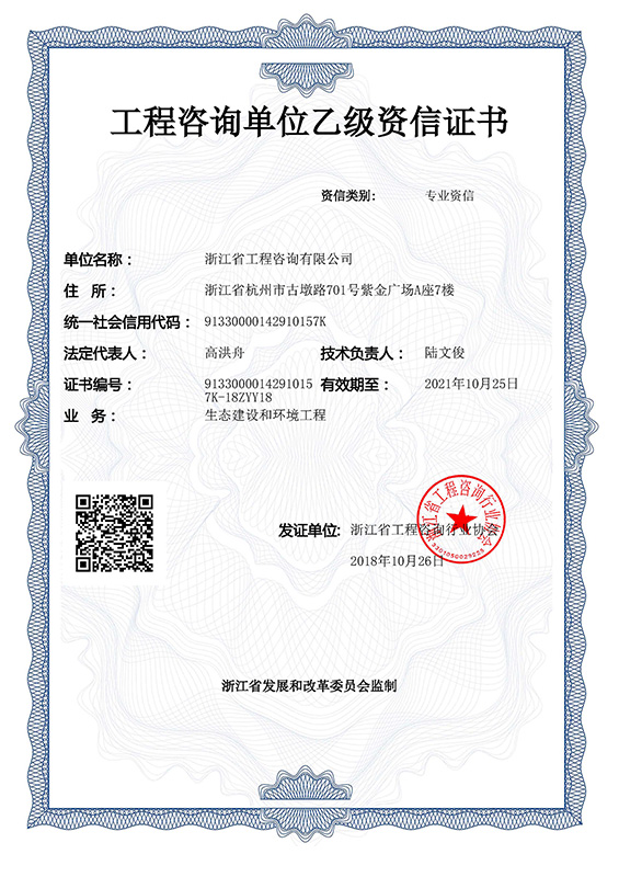 • 工程咨询单位乙级资信证书-生态建设和环境工程