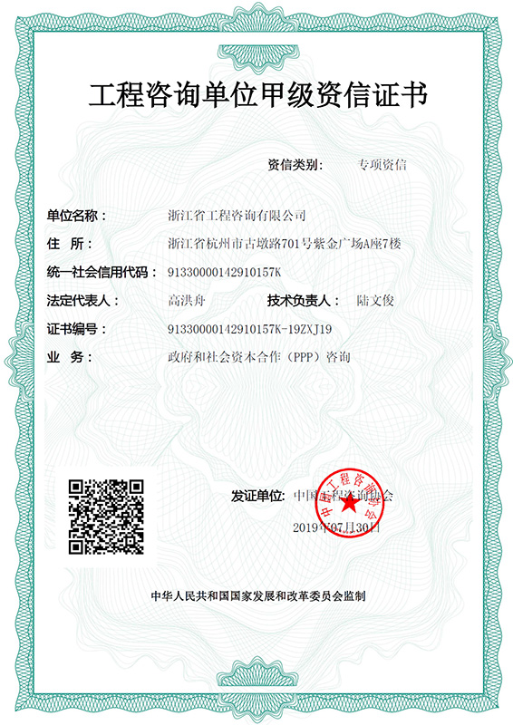 • 工程咨询单位甲级资信证书-政府和社会资本合作(PPP)咨询