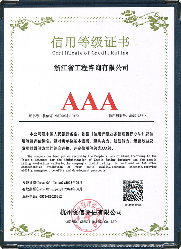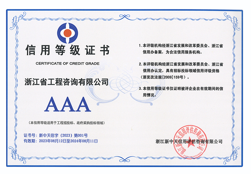 • 浙江省招标投标领域企业信用等级AAA