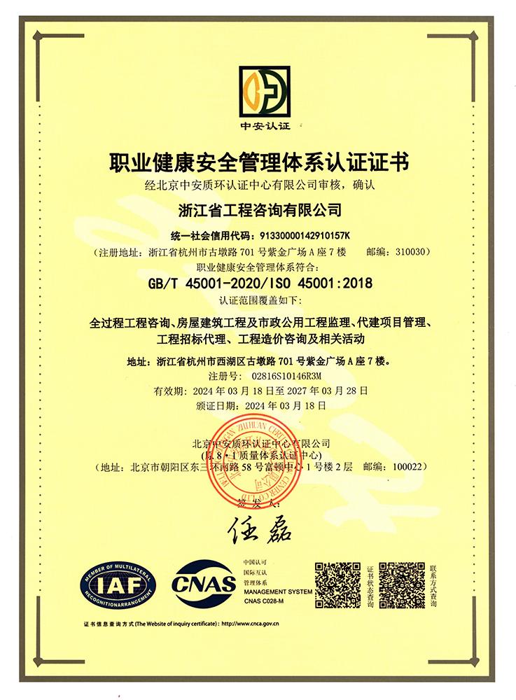 • 职业健康安全管理体系认证证书