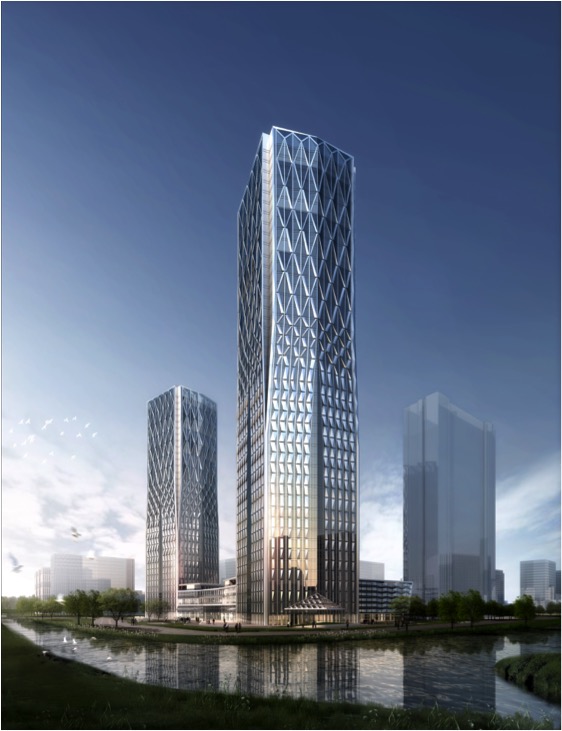 恒生金融云产品生产基地1号楼及地下室一期项目位于滨江区时代大道与滨兴路交叉口,紧邻复兴大桥、中兴立交。该项目总投资约为12亿元,总建筑面积约15万平方米,地上45层,地下3层。该项目的建设将提升复兴大桥入城口的城市形象,成为滨江的新地标。