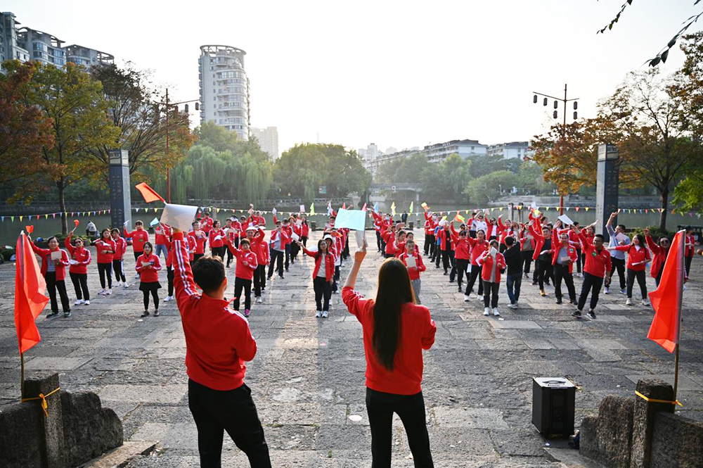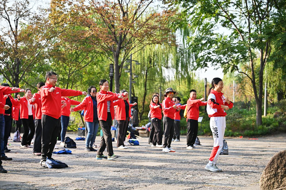 在协会领导的带领下,大家井然有序,沿着大运河北上,穿过霞湾桥,途经富义仓、大兜路历史文化街区及青莎公园,沿途沐浴着温暖的秋日阳光,饱览千年京杭大运河的风光旖旎,享受着健康运动带来的身心快乐。在北新关码头,大家进行了丰富多彩的团建趣味互动活动。
