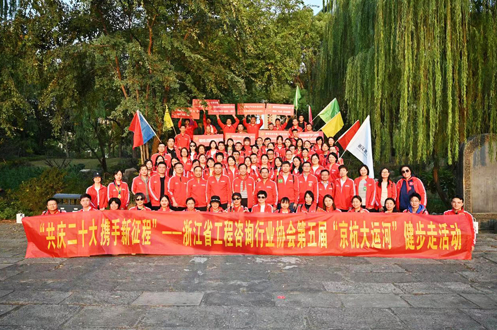 2022年11月7日下午,浙江省工程咨询行业协会举办了第五届“京杭大运河健步走”活动。活动由会长刘亭任领队,驻会副会长桑文力、监事沈军任副领队。协会在杭8位副会长及50余家会员单位共百余人参加了本次活动。我公司积极响应,并派出办公室主任金美青同志,参与本次活动。